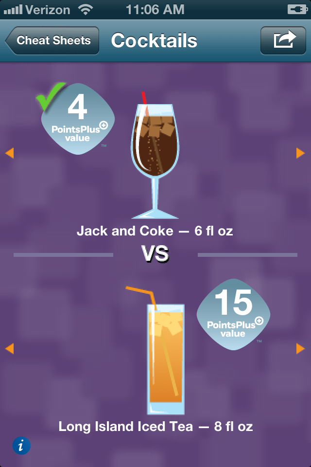 While eTools has a ton of good info, I have to say I really enjoyed the cheat sheets. One of the hardest things to do is guestamate the points value of food when eating out. I’m not in control of how it was prepared. I’m not measuring or weighing everything. So there is a lot of guess work. The cheat sheet is a nice idea to give you a general idea of how many points you might be consuming. From a breakfast builder to happy hour foods, the cheat sheet is perfect for folks on the go. However, the mobile app version is lacking. Right now it’s limited to pizza, cockktails, pasta and salads. And some of those are limited too. I’m optimistic that WW can improve the app version.