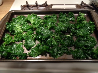 Kale chips satisfy the salty and crunchy cravings for potato chips. I enjoyed a batch as I watched the Seahawks pummeled the Broncos.